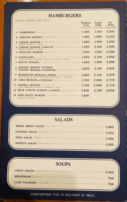「フランクリン・アベニュー」メニュー