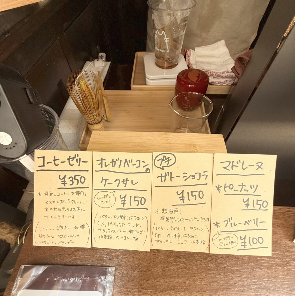 こんなこだわりのメニューですが、サクレや、プチガトーショコラ、マドレーヌは¥150と驚き価格。