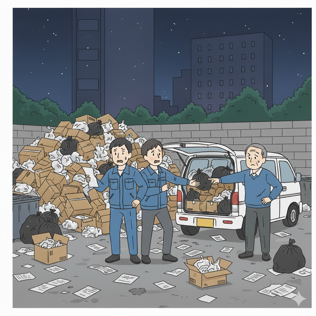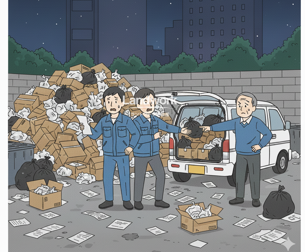 会社に戻り報告したところ、上司から「建物が異なるので、ここから他所のゴミは捨てられない! 戻してこい」