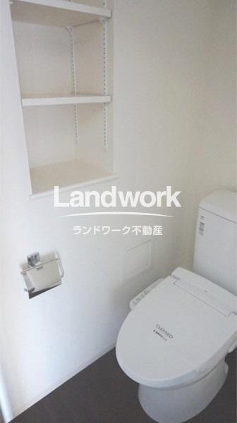 また2口ガスシステムキッチンを採用しており本格的なお料理もストレスなく調理いただけます。浄水器も設置済とまっています。お手洗いは温水洗浄便座をスタンダード設備としてご用意しています。また、横に棚もあるのでペーパー等の収納場所に困りません。